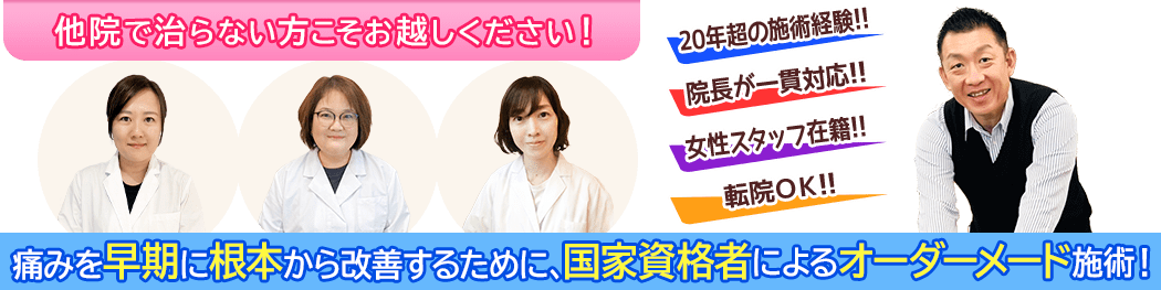 当院では、施術経験が豊富な院長自ら施術させていただきます。そのため、途中で施術者が変わるといった心配・・・