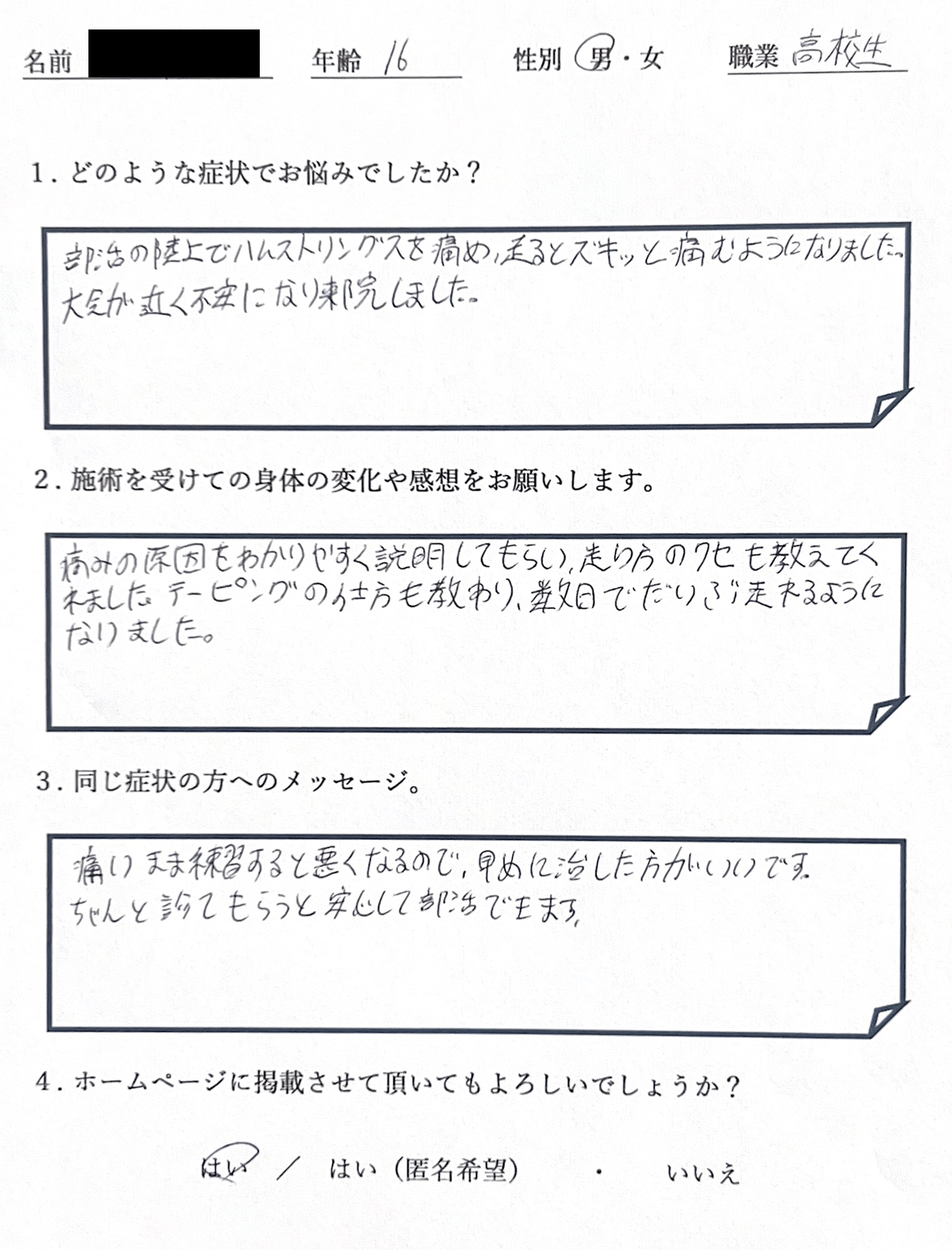 ジャンパー膝、野球肘、シンスプリント、疲労骨折、アキレス腱周囲炎、アキレス腱断裂などの他、成長期にはオスグッド・シュラッター病などがあります。